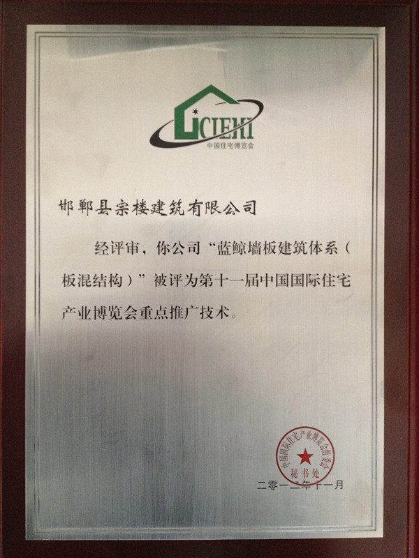 第十一屆國際住宅產(chǎn)業(yè)博覽會重點(diǎn)推廣技術(shù)獎牌